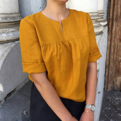 Loose Washed Linen Vintage Yellow Blouse With 3 4 Sleeves Etsy Uk
